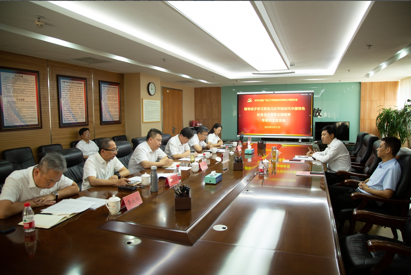 2023年9月21日下午(wu),中(zhong)國(guo)廣電(dian)遼寧網(wang)絡股(gu)份有限公司(簡稱中(zhong)國(guo)廣電(dian)遼寧公司)召開領導班(ban)子學習貫徹習近平新時(shi)代中(zhong)國(guo)特色社會(hui)(hui)主(zhu)(zhu)義思想主(zhu)(zhu)題教育專題民主(zhu)(zhu)生活會(hui)(hui)。省委宣(xuan)傳部(bu)文(wen)改辦主(zhu)(zhu)任(ren)李東到會(hui)(hui)指導。會(hui)(hui)議由公司主(zhu)(zhu)要領導要春華主(zhu)(zhu)持,全體(ti)領導班(ban)子成員參加會(hui)(hui)議。黨建部(bu)門(men)相(xiang)關負責人列席會(hui)(hui)議。