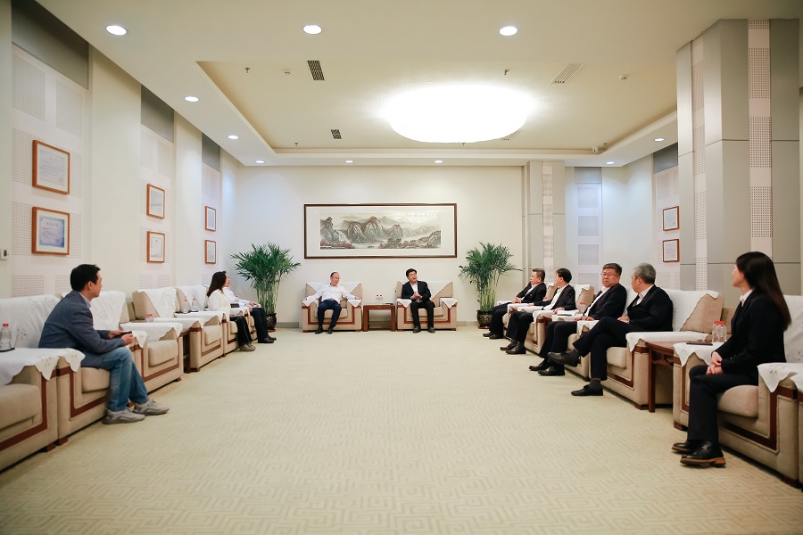 雙方主要領(ling)導(dao)在(zai)簽約儀式前(qian)進行座談交流(liu)