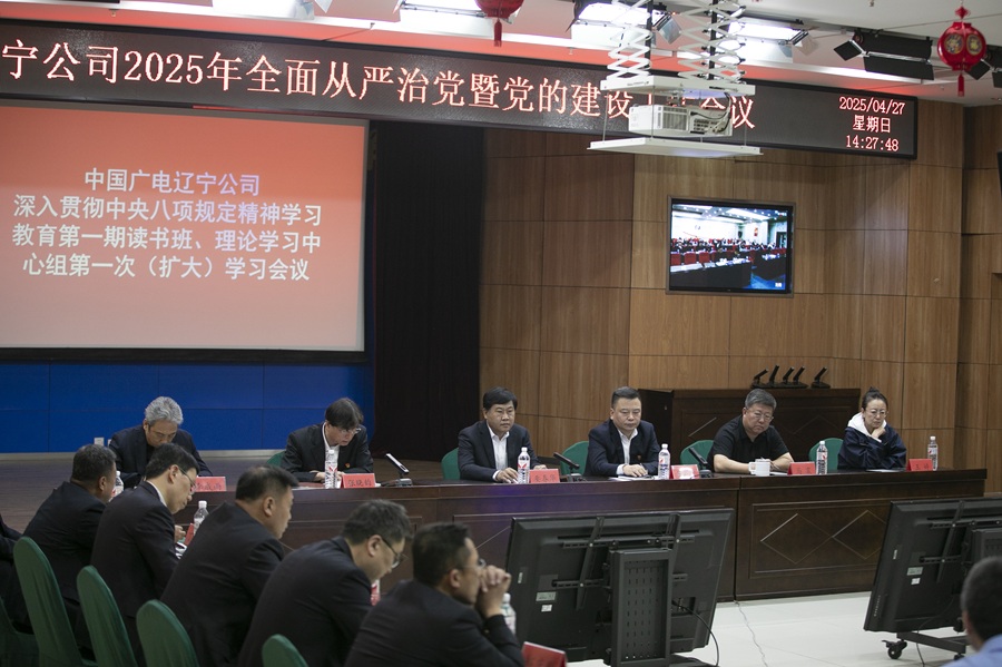 2025年4月27日下(xia)午,中國(guo)廣電遼寧(ning)公司召開2025年全(quan)面(mian)加(jia)強(qiang)黨的(de)建(jian)設(she)(she)暨深(shen)入貫(guan)(guan)徹中央(yang)八(ba)項規定(ding)精神學(xue)習(xi)(xi)教育第一期讀書(shu)班(ban)、理論學(xue)習(xi)(xi)中心組(zu)第一次(擴大)學(xue)習(xi)(xi)會議,部署公司2025年黨建(jian)工(gong)(gong)作的(de)重(zhong)點任務及深(shen)入貫(guan)(guan)徹中央(yang)八(ba)項規定(ding)精神學(xue)習(xi)(xi)教育工(gong)(gong)作,同時,結合思想(xiang)和工(gong)(gong)作實際(ji)開展交流研(yan)討,推動中央(yang)八(ba)項規定(ding)精神內化于(yu)心、外化于(yu)行,推進公司全(quan)面(mian)從嚴治黨、黨風廉政建(jian)設(she)(she)、反(fan)腐斗爭向(xiang)縱深(shen)發(fa)展。