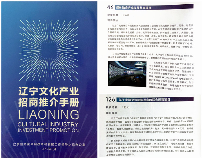 在(zai)同日舉辦的(de)項(xiang)目(mu)(mu)對(dui)接洽談會(hui)上,北(bei)方廣(guang)電網絡公司(si)共推(tui)出了兩個文化產業招(zhao)商(shang)項(xiang)目(mu)(mu),即(ji)擬聯合籌(chou)措1億(yi)元(yuan)資(zi)(zi)(zi)金(jin),用(yong)以建(jian)立媒體融(rong)合產業發展基(ji)(ji)金(jin)項(xiang)目(mu)(mu),基(ji)(ji)金(jin)支持(chi)具體包括融(rong)媒體中心、智(zhi)(zhi)慧城市(shi)應(ying)用(yong)在(zai)內的(de)相關產業項(xiang)目(mu)(mu)。并(bing)擬籌(chou)資(zi)(zi)(zi)3億(yi)元(yuan)資(zi)(zi)(zi)金(jin),針(zhen)對(dui)遼寧省尚存的(de)80萬標(biao)清(qing)機頂(ding)盒(he)用(yong)戶,通過市(shi)場化+二(er)次整轉相結合的(de)方式將全部存量(liang)標(biao)清(qing)終(zhong)端更(geng)換為“小(xiao)精靈”智(zhi)(zhi)能機頂(ding)盒(he)終(zhong)端,其中終(zhong)端投入(ru)2.4億(yi)元(yuan),前端應(ying)用(yong)平(ping)臺投入(ru)0.6億(yi)元(yuan)。上述兩個項(xiang)目(mu)(mu),誠邀合作商(shang)共同利用(yong)北(bei)方廣(guang)電已搭建(jian)的(de)智(zhi)(zhi)能平(ping)臺聯合投資(zi)(zi)(zi)運營并(bing)共享收益。