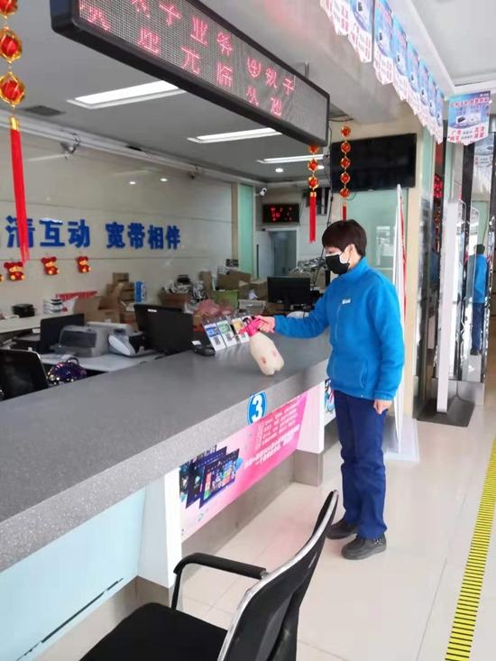 入黨(dang)(dang)積極分子許可同志主動放(fang)棄假(jia)期,每天(tian)提前半小時消(xiao)毒(du)營(ying)銷設備(bei)和(he)工作(zuo)臺面,隨時清理營(ying)業(ye)廳(ting)衛(wei)生。共產黨(dang)(dang)員張妍同志,全天(tian)侯值守,堅持為營(ying)業(ye)廳(ting)員工及(ji)進(jin)廳(ting)客(ke)戶(hu)測量體溫,并隨機耐心(xin)地為客(ke)戶(hu)講解疫情防(fang)控知識和(he)注(zhu)意事項(xiang)。黨(dang)(dang)員們表示:“只有保護(hu)好自己,我(wo)們才能更好(hao)的(de)保護(hu)用戶、更好(hao)地開展服務工作(zuo)!”