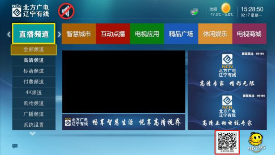 如(ru)果您家(jia)里已安裝北(bei)方廣電(dian)機(ji)頂(ding)盒,開(kai)機(ji)后掃描屏幕右(you)下方“業務預(yu)約(yue)(yue)二(er)維(wei)碼”,即可(ke)進行業務預(yu)約(yue)(yue)。