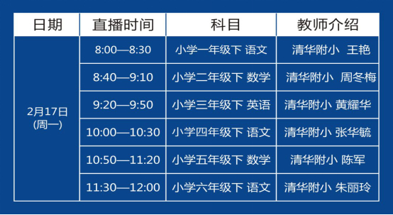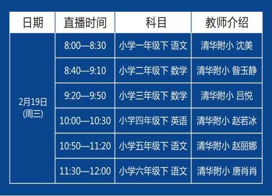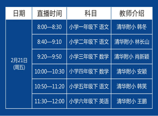 2月17日——2月21日:每天(tian)8:00—12:00首(shou)播, 具體課程安排請以實際播出(chu)內容為準。