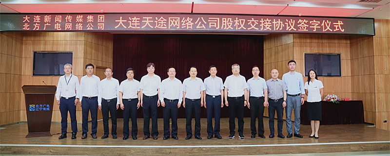6月9日上午,北方(fang)(fang)廣(guang)電(dian)(dian)網(wang)絡(luo)(luo)公(gong)司(si)與大(da)連新(xin)聞傳媒集團(tuan)在公(gong)司(si)7樓會議室舉行(xing)了大(da)連天途(tu)有(you)線電(dian)(dian)視網(wang)絡(luo)(luo)股(gu)份有(you)限公(gong)司(si)股(gu)權交接簽字(zi)儀式(shi)。省(sheng)廣(guang)電(dian)(dian)局(ju)副(fu)局(ju)長栗(li)萬紅(hong),北方(fang)(fang)廣(guang)電(dian)(dian)黨(dang)委書記(ji)、董(dong)事長、總(zong)經(jing)理曾紹武,大(da)連新(xin)聞傳媒集團(tuan)副(fu)總(zong)經(jing)理李(li)盛(sheng)之等領(ling)導(dao)出席簽字(zi)儀式(shi)。儀式(shi)由北方(fang)(fang)廣(guang)電(dian)(dian)網(wang)絡(luo)(luo)公(gong)司(si)紀委書記(ji)陳金宏主持。大(da)連新(xin)聞傳媒集團(tuan)副(fu)總(zong)經(jing)理李(li)盛(sheng)之和(he)北方(fang)(fang)廣(guang)電(dian)(dian)網(wang)絡(luo)(luo)公(gong)司(si)副(fu)總(zong)經(jing)理張曉鈞代表雙方(fang)(fang)簽字(zi)。