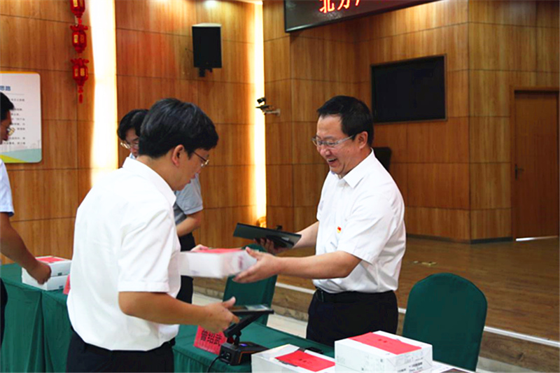 公司黨委書記、董事長、總經理曾紹武同志為獲獎(jiang)作者頒獎(jiang)