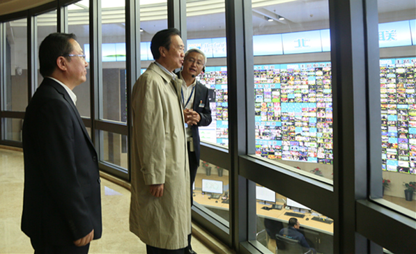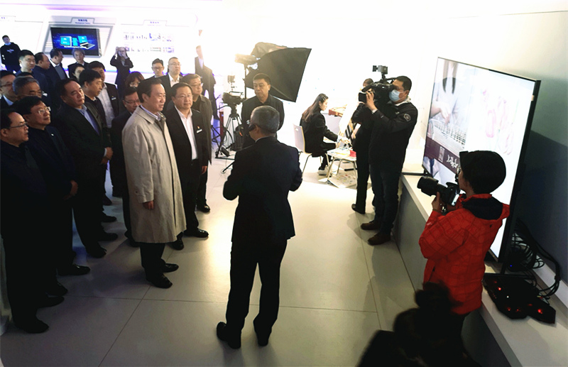 下午14時20分許,夏德仁主席一行來到北方廣電5G應用創新綜合展示廳和播控指揮調度中心,認真聽取了北方廣電黨委書記、董事長、總經理曾紹武對有關企業發展、“全國一網”整合、5G應用創新等情況的匯報;詳細了解了公司互動業務、融合網絡、智慧廣電建設等基本情況和主營業態;重點了解了廣電5G的特點、優勢、應用及發展規劃;現場體驗了廣電5G+媒體制作、AR、VR呈現、云游戲等新應用;悉心考察了廣電5G+8K直播、智能安防、智慧家庭、智慧社區、智慧教育、智慧醫療等廣電5G智慧應用;實地參觀了云數據中心和播控指揮調度中心;詳細詢問了北方廣電改革發展面臨的形勢、機遇和問題。