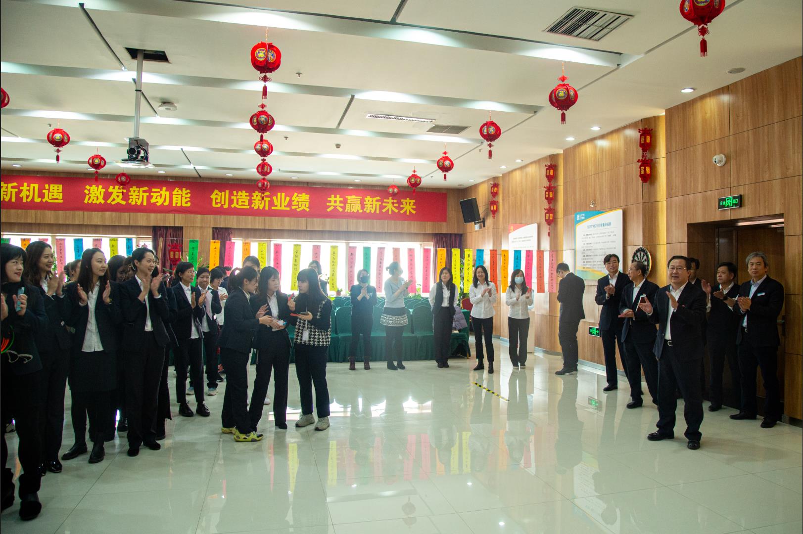 公司領(ling)導(dao)及總助級領(ling)導(dao)人員(yuan)與現(xian)場(chang)全(quan)體(ti)女員(yuan)工合影