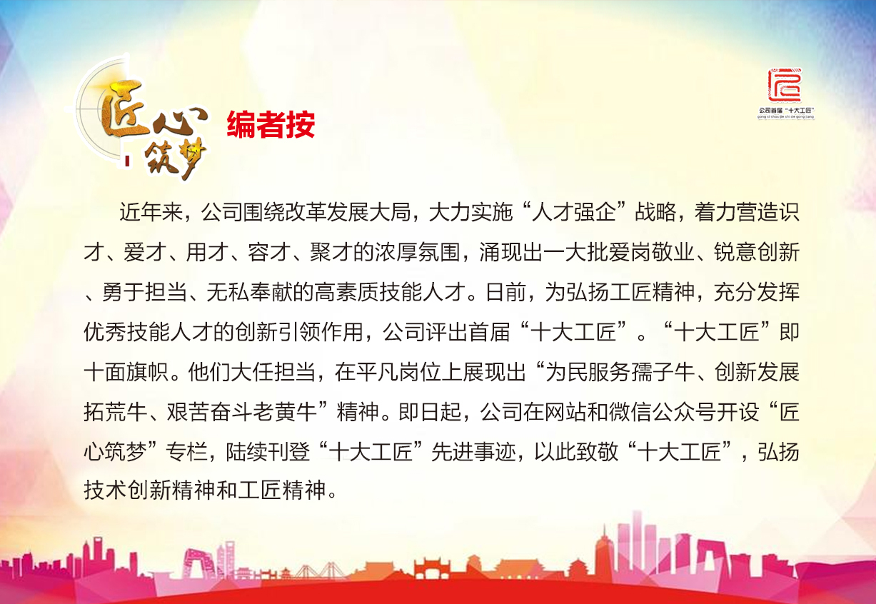 “工(gong)(gong)匠精(jing)神”不是枯(ku)燥機械的、僵硬死板的,而是一種(zhong)(zhong)熱愛(ai)工(gong)(gong)作(zuo)的精(jing)神,是一種(zhong)(zhong)精(jing)益(yi)求(qiu)精(jing)的態度。付(fu)顏軍就(jiu)(jiu)是這種(zhong)(zhong)“工(gong)(gong)匠精(jing)神”忠實踐行者,他(ta)(ta)熱愛(ai)自(zi)己所從(cong)事的工(gong)(gong)作(zuo),敢于面對困難、接受各(ge)種(zhong)(zhong)技術挑戰。他(ta)(ta)從(cong)不曾有(you)任(ren)何怨言(yan),窮(qiong)盡30年磨(mo)練技能(neng),這就(jiu)(jiu)是他(ta)(ta)的秘(mi)訣,也是他(ta)(ta)贏(ying)得人們敬重的關鍵。