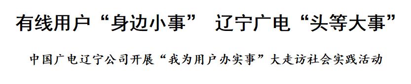 連日(ri)來,中(zhong)國(guo)廣電遼寧網絡(luo)股份有限公(gong)司(si)(簡稱中(zhong)國(guo)廣電遼寧公(gong)司(si))把“我為用戶(hu)辦實事”大走訪(fang)(fang)社會實踐活動(dong)(dong)作為黨史(shi)學習教育的重要內容,按照(zhao)“入戶(hu)走訪(fang)(fang)全(quan)覆蓋(gai)、用戶(hu)訴求全(quan)兜清(qing)、反映問題全(quan)解決(jue)”的總要求,聚焦用戶(hu)“急難愁盼”問題,登門(men)入戶(hu)維護設備,優化網絡(luo)提升服(fu)務,帶著感情傾(qing)聽(ting)需(xu)求,開動(dong)(dong)腦筋解決(jue)問題,用實際行動(dong)(dong)詮(quan)釋“黨媒政網”的政治(zhi)使命。