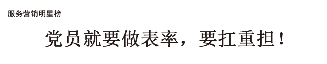 “勇當(dang)先鋒”的(de)意(yi)識融(rong)入了湖南區域公司(si)黨(dang)支(zhi)部每位黨(dang)員(yuan)的(de)骨子里,他們以實際(ji)行動,帶動著身(shen)邊的(de)員(yuan)工積極進取。“初心不改共成長,凝心聚力譜(pu)新篇!”湖南黨(dang)支(zhi)部以高度的(de)事業(ye)心、強烈的(de)責任感、飽滿的(de)工作(zuo)熱情(qing)和(he)忘我的(de)精神狀態全(quan)身(shen)心投入工作(zuo)中,砥礪前行,為公司(si)“爭(zheng)收入,守(shou)用戶”做(zuo)出應有的(de)貢獻!