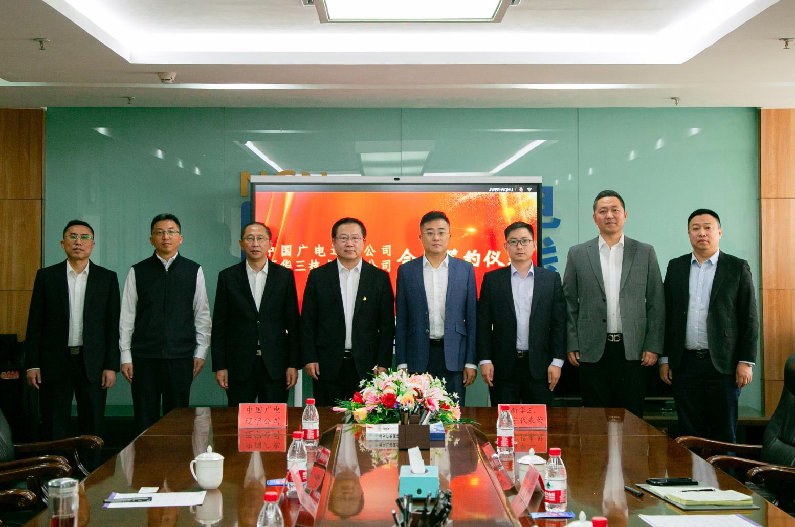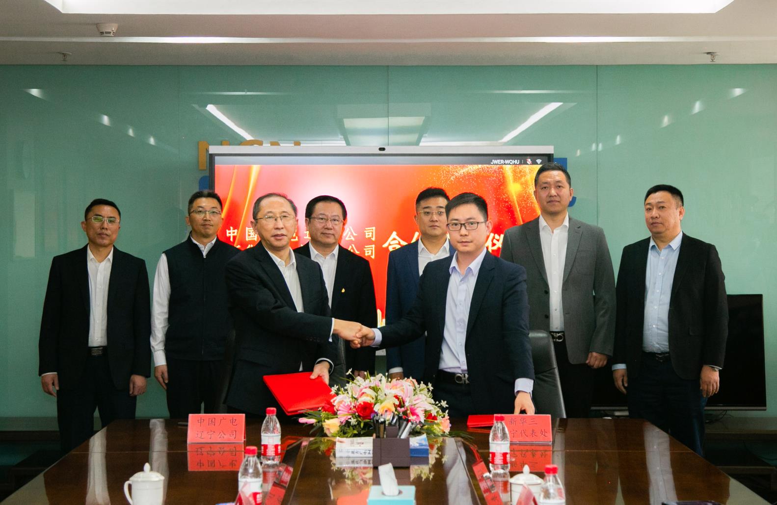 中國廣電遼寧公司總工程師王兆恒與新華三集團遼寧代表處產品部部長鄭東亞簽署戰略合作協議