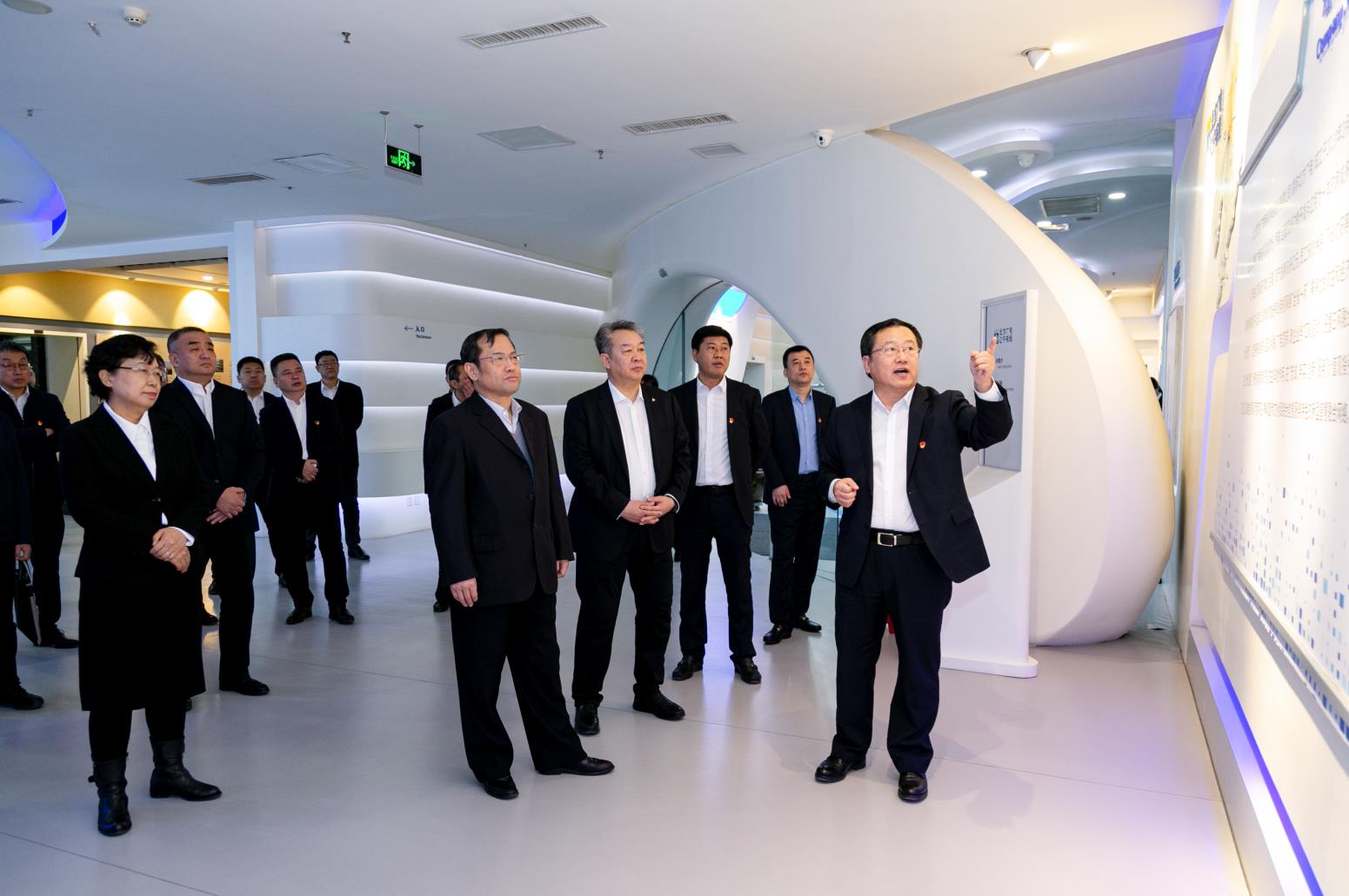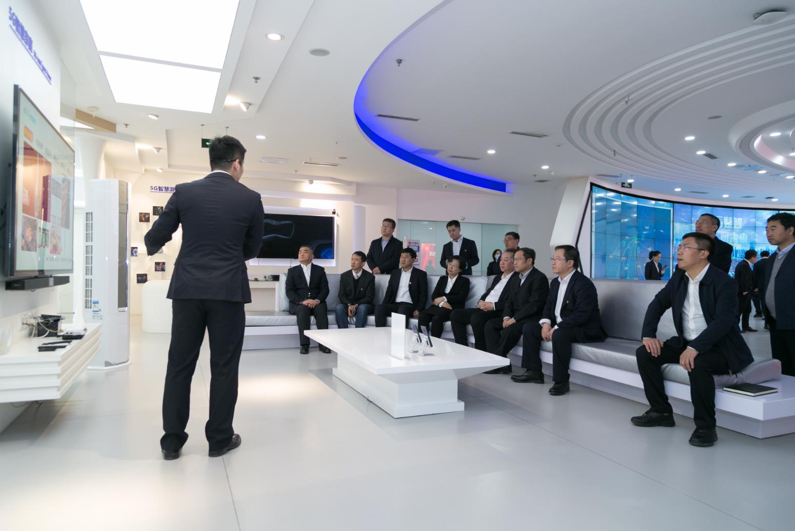 曾紹武董事長向參加儀式領導介紹公司5G智慧安防、智慧港口等業務應用