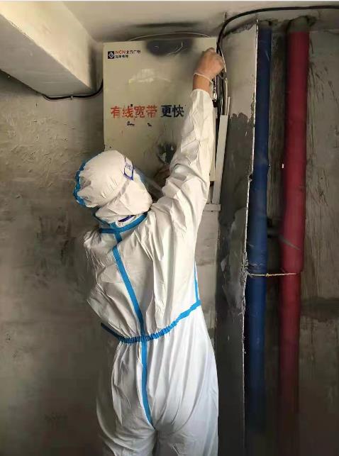 沈陽市分公(gong)司(si)領導(dao)指示:特殊時(shi)期,一切工(gong)作都(dou)要(yao)服從大局。應急(ji)服務保障(zhang)(zhang)工(gong)作小組立馬與皇姑區(qu)疫(yi)情(qing)防控指揮部取得聯系,說明故障(zhang)(zhang)情(qing)況并獲得批(pi)準(zhun)后,包括分公(gong)司(si)副總經(jing)理伊秀(xiu)中、區(qu)域公(gong)司(si)運維(wei)主管趙(zhao)詩(shi)良、客服組長符(fu)東博及客服專員童寧在(zai)內的第(di)一批(pi)搶(qiang)修人員,嚴格按(an)照防疫(yi)要(yao)求(qiu),做好全面防護后,率先進入封控區(qu)排查故障(zhang)(zhang)原因。