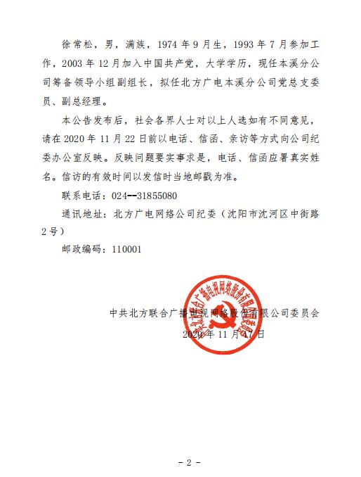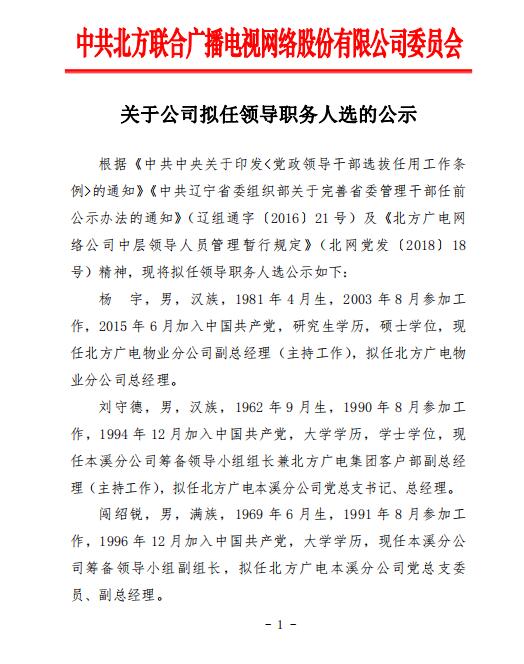 關于公司擬任領導職務人選的公示