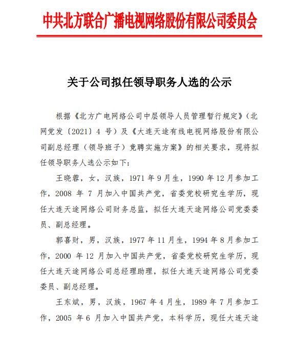 關于大連天途公司擬任中層(正職)人選的公示