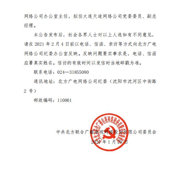 關于公司擬任領導職務人選的公示