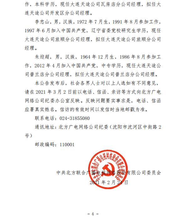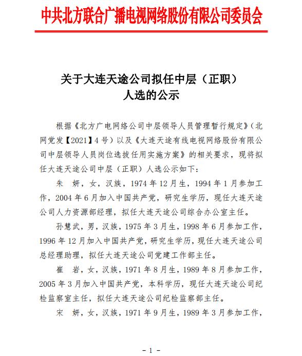 北方廣電網絡公司黨委關于全省和省(中)直企業“兩優一先”推薦對象的公示