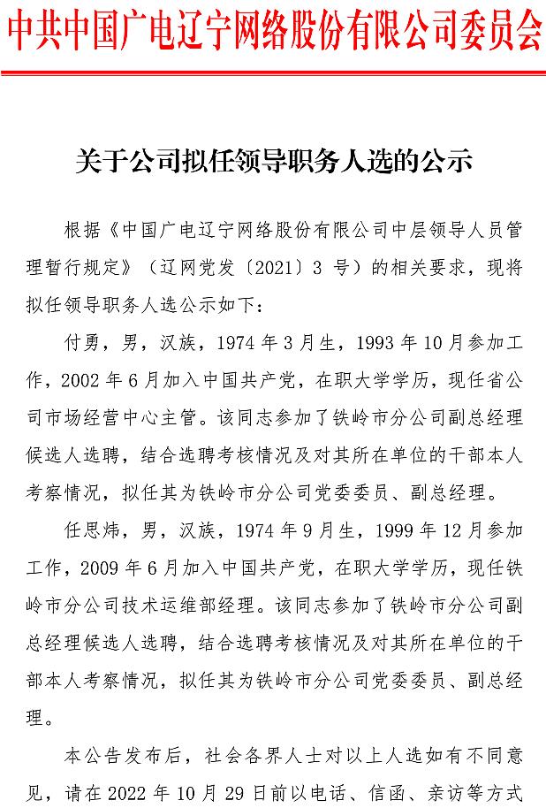 關于公司擬任領導職務人選的公示