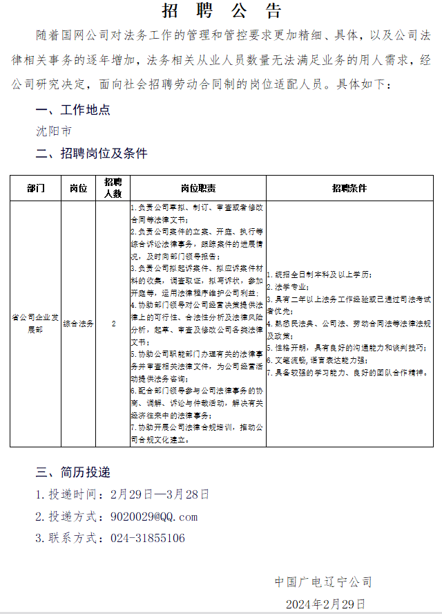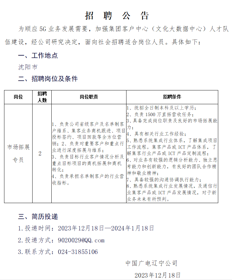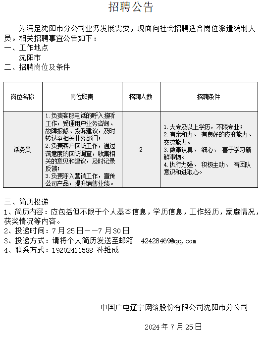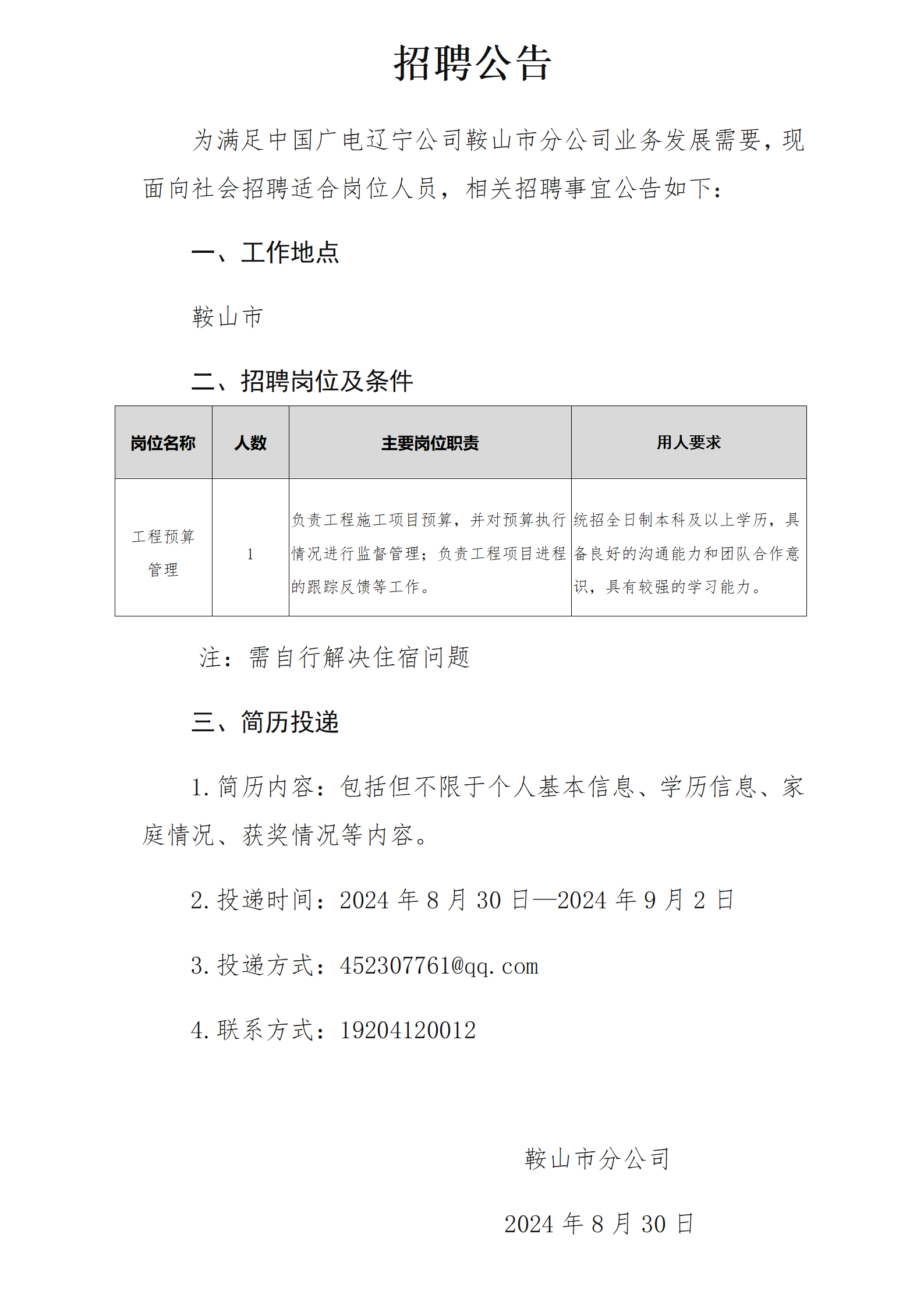 聯系人:遼寧公司鞍山市分公司 簡歷投遞郵箱:452307761@qq.com