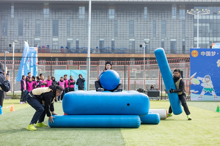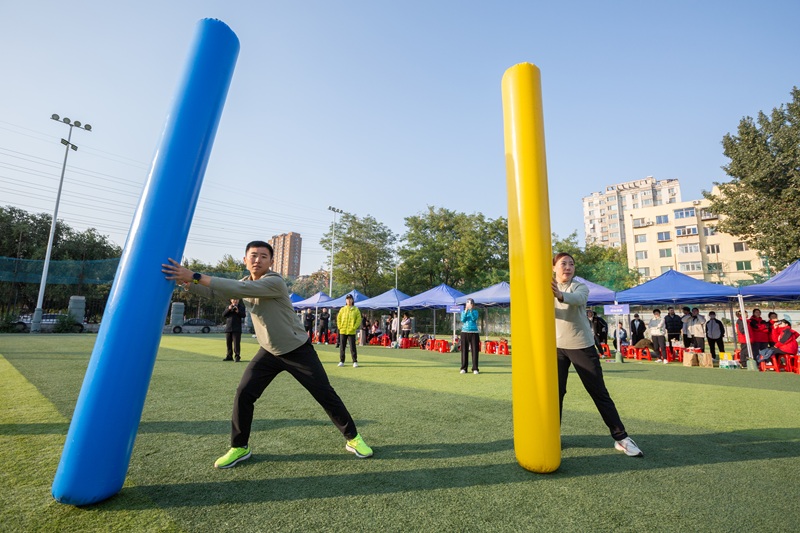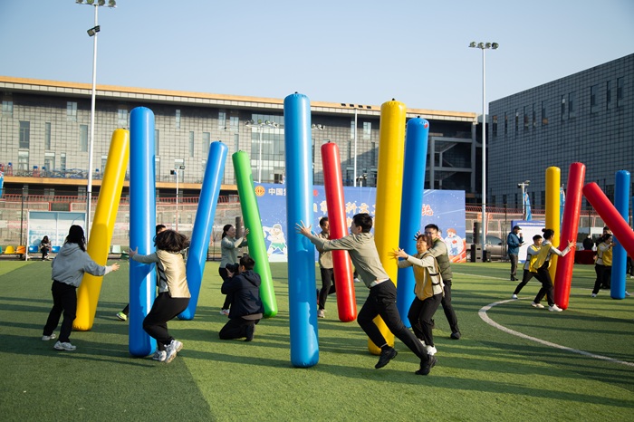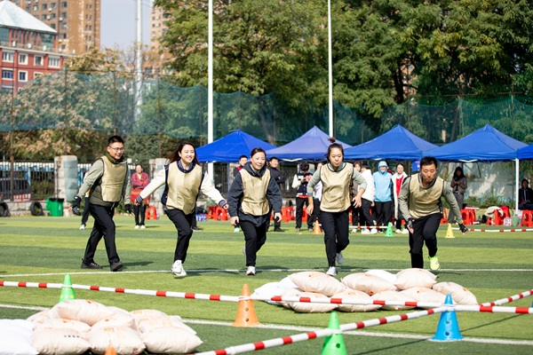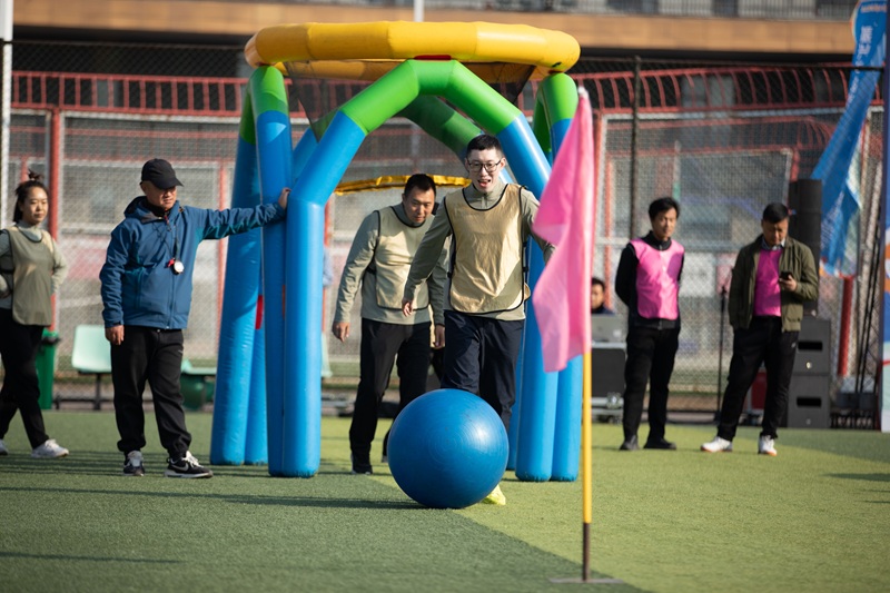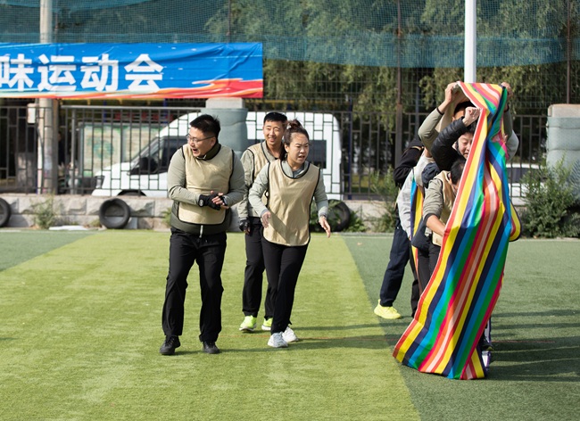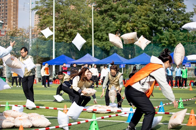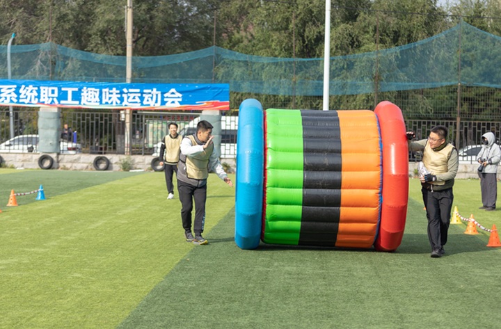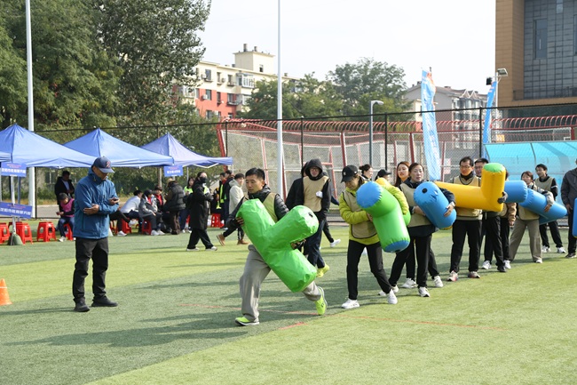 與(yu)傳統運(yun)動(dong)會相比,此次趣(qu)(qu)味(wei)運(yun)動(dong)會將(jiang)競技(ji)與(yu)娛樂相結合,著(zhu)重于(yu)團(tuan)隊協作和團(tuan)隊精(jing)神(shen)。運(yun)動(dong)會一開場,緊張(zhang)刺(ci)激的(de) “奮勇(yong)爭先”就點燃(ran)了全(quan)場熱(re)情(qing)。該項目注重團(tuan)隊的(de)節奏與(yu)默契,考(kao)驗的(de)是大家(jia)的(de)智慧與(yu)耐力。隊員們(men)精(jing)神(shen)高度集中(zhong),隨著(zhu)裁判一聲哨鳴,大家(jia)騎著(zhu)巨(ju)型“毛毛蟲”,喊著(zhu)“左、右(you)、左、右(you)”的(de)口號,在歡聲笑語中(zhong)同頻前行,男女配(pei)合、趣(qu)(qu)味(wei)盎然。