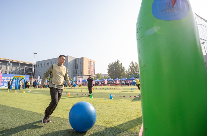 “擁抱夢想(xiang)”是本(ben)場趣(qu)味運(yun)動會中(zhong)難度較大的團隊協(xie)作(zuo)項目,將籃球技巧融于足球力(li)量之中(zhong),在保持平衡的同時完成傳(chuan)球、越障和(he)接力(li)動作(zuo)。隊員們在歡聲笑語中(zhong)沖(chong)刺終點線。