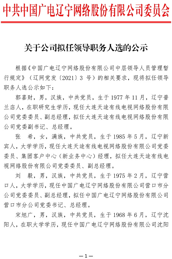 中國廣電遼寧網絡股份有限公司公司董事、監事、高級管理人員2023年度薪酬情況