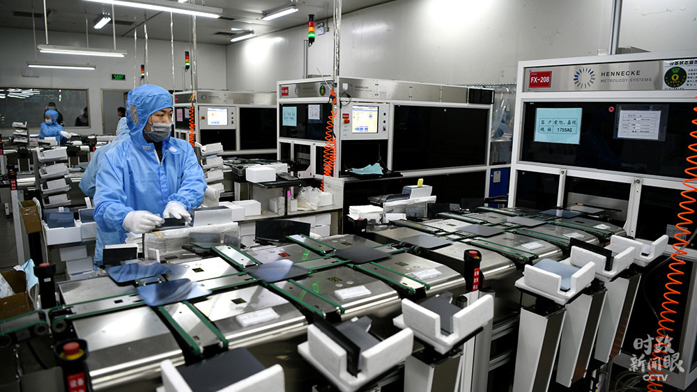 1月,江蘇東海高新區半導體材料生產企業,工人在生產線上進行硅片分選。