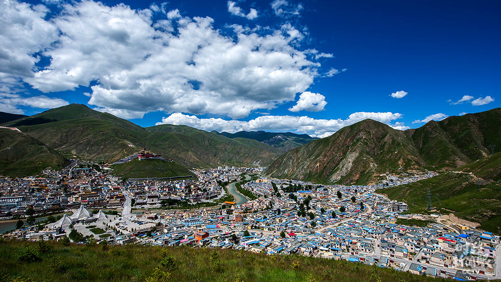 從當代山觀景臺俯瞰青海玉樹結古鎮