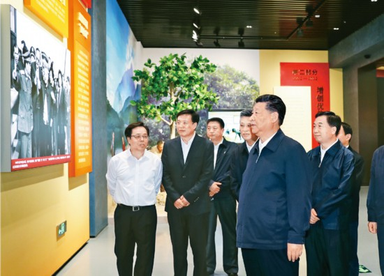 2017年10月31日,中共中央總書記、國家主席、中央軍委主席習近平帶領中共中央政治局常委李克強、栗戰書、汪洋、王滬寧、趙樂際、韓正,瞻仰上海中共一大會址和浙江嘉興南湖紅船。這是31日上午,習近平等在上海中共一大會址紀念館參觀。 新華社記者 蘭紅光/攝